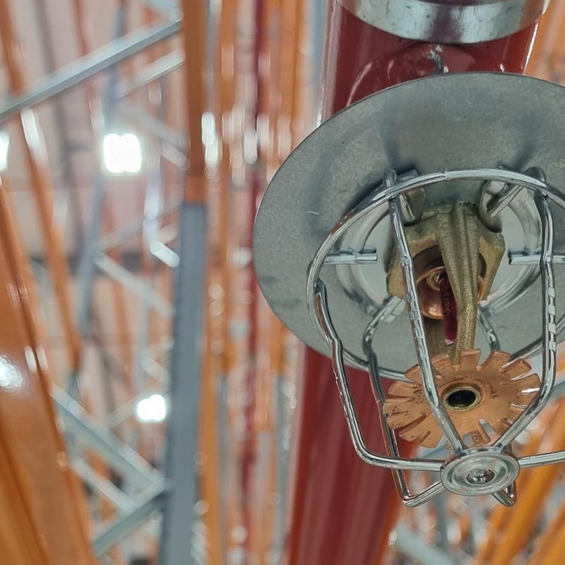 The project consisted of stripping out existing roof and in–rack sprinkler protection, which was then redesigned to upgrade roof protection from 7.5mm/min over 260m² design density to 10mm/min over 260m²; complete with a new installation control alarm valve to client requirements and connecting pipework. New in–rack sprinklers were then installed within extended racks in accordance with TB234 ST4 requirements fed from existing installation control alarm valve. All pipework gloss painted to client specification.